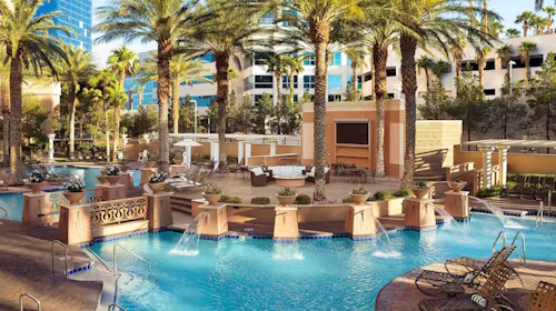 This Las Vegas property includes a fitness center, heated pools, whirlpool spas, a seasonal pool bar & grill, on-site deli, shops, and lounges, etc located on 10 acres on the north end of "The Strip". Superbly located on a 10-acre site on Las Vegas Boulevard at the north end of the Las Vegas Strip. The resort will offer ideal access to the renowned Las Vegas attractions. A variety of amenities have been thoughtfully designed to accommodate visitors to this thriving destination. Recreational facilities will include a fitness center, sports court, and elaborate water features including fountains, swimming pools, whirlpool spas, and interactive children's pool. A pool bar and grill, deli, and an Owner's Lounge are slated to further enhance the comfort of this spectacular new resort!